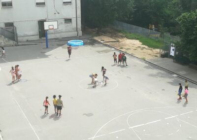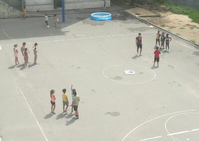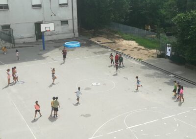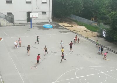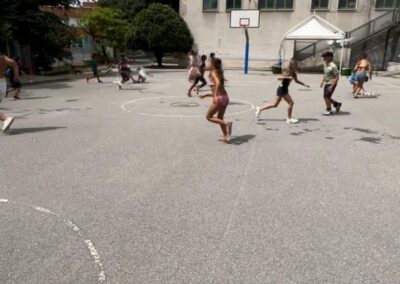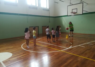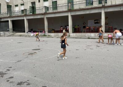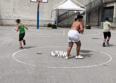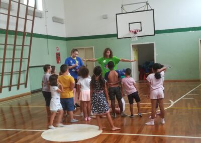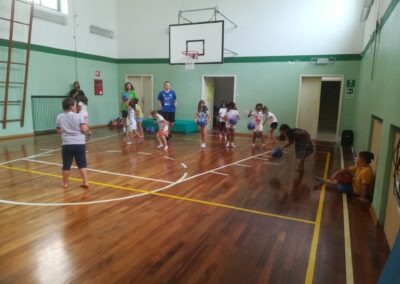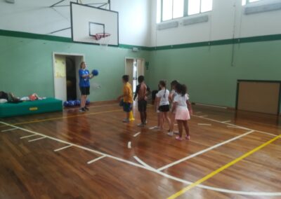 Oggi incontriamo due nuove maestre della società sportiva di basket che ci fanno giocare diversi giochi con i palloni e non solo. Poi i bambini che hanno fatto basket il primo turno si concedono un po’ di relax in piscina e giochi da “sirenetta e tritoni“.