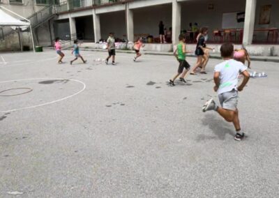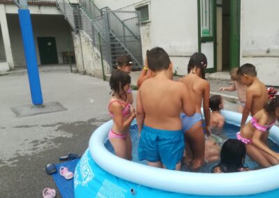 Dopo il pranzo e la volta del secondo gruppo: per loro ci sono i “giochi d’acqua sportivi” e poi chi vuole, può starsene in ammollo in piscina prima di merenda.