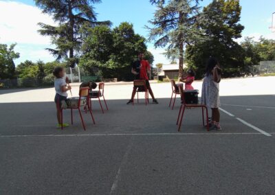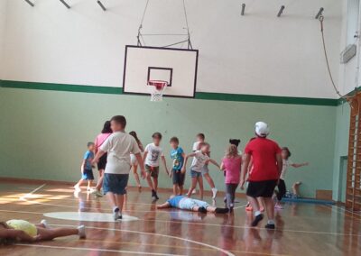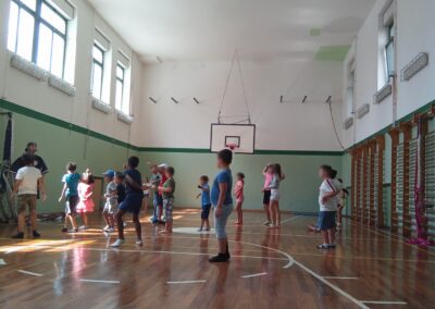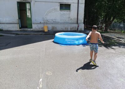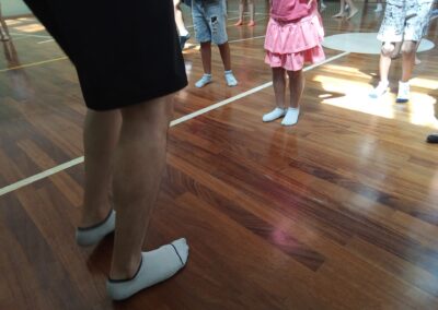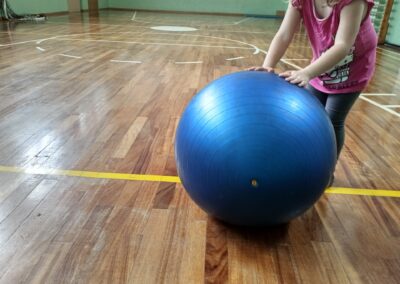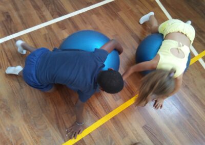 Visto che l’attività si svolge a turni, il gruppo che non è impegnato in ciò ha l’occasione di passare del tempo in palestra. Tra palloni di basket, il materasso e i palloni grandi da psicomotricità il tempo vola…