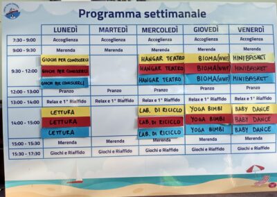 Tor Cucherna Vai al centro estivo Programma della settimana14 Agosto 2023 | Tor Cucherna Si è concluso anche il terzo turno del nostro centro estivo, per festeggiare al meglio è venuto a trovarci Nunzio del Gelato Vagabondo! Ecco il programma della settimana di Ferragosto, vi aspettiamo e ci prendiamo una pausa solo martedì 15! Altre notizie! Festa finale – Infanzia Grazie ai bambini e alle bambine che hanno frequentato questa estate piena di divertimento, giochi, uscite e tante attività. Grazie agli educatori… Leggi di più Festa Finale Cari genitori siete tutti inviatati per festeggiare la fine di questa bellissima estate trascorsa assieme. Quest’anno ci saranno ben 2 grandi feste… Leggi di più Attività del 18 agosto Attività di origami svolta da tutti i gruppi… Leggi di più Lavoretti per tutti La prima settimana del quarto turno si e’ conclusa, le giornate sono trascorse veloci tra lavoretti, pasta di sale, yoga e pittura a dita… Leggi di più Venerdì 18 Questo è il mondo che stiamo costruendo… Leggi di più Hip hop! Il maestro Gabriele ci ha insegnato ad usare braccia e piedi a ritmo di musica..la coordinazione è tutto! Ovviamente ne siamo usciti… Leggi di più Torna indietro