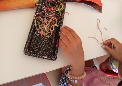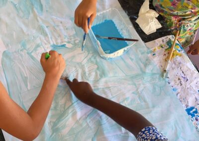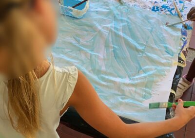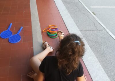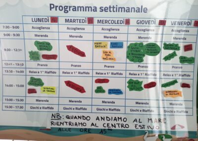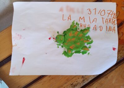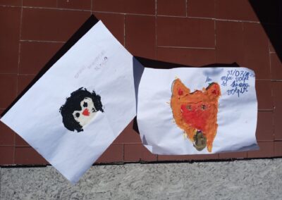Poi si colora un po’ come lavoro preparatorio del paesaggio di cartapesta, un po’ dipingiamo le creazioni di pasta di sale. Giochiamo a Uno, facciamo i braccialetti, giochiamo a calcio, e infine al pomeriggio ascoltando un po’di musica trascriviamo su un foglio grande la nostra canzone… Mercoledì potremo così appenderla per impararla meglio.